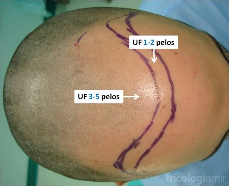 Cada paciente es único y para obtener los mejores resultados es clave no sólo el número de UF a trasplantar sino también su diseño, densidad y distribución. Deberemos decidir en función de múltiples variables como el tipo y color de pelo, la edad del paciente, el patrón de alopecia o su peinado habitual. En la implantación, las UF de 1 y 2 folículos se utilizan en la parte delantera, en las primeras líneas de implantación capilar (para aportar la máxima naturalidad), mientras que las UF de 3 o más folículos se utilizan en las zonas más posteriores, para aportar la máxima densidad.