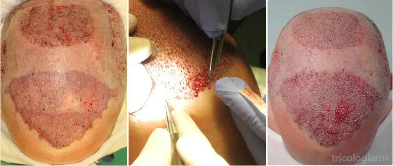 Una vez realizada la implantación de las UF debemos asegurarnos que cada UF queda fija, perfectamente instalada en su nuevo hábitat, para optimizar al máximo la supervivencia de cada uno los injertos. Finalmente, repasamos el diseño global del trasplante (pudiéndose realizar algún retoque final), se limpia toda la zona quirúrgica, se insisten en las medidas postoperatorias al paciente y se da por finalizada la cirugía.