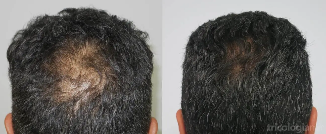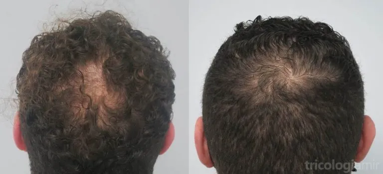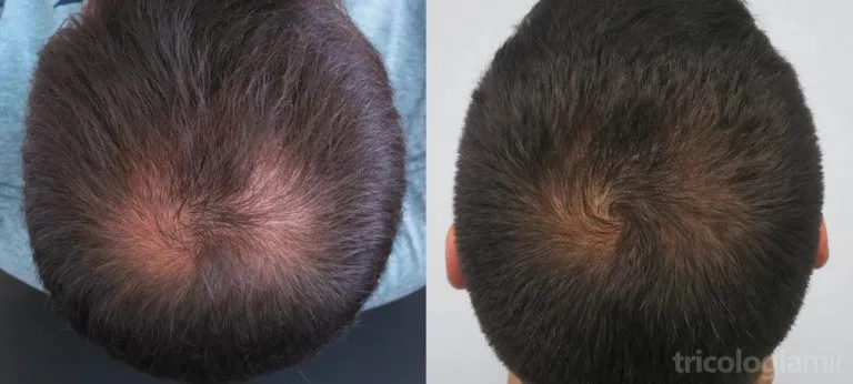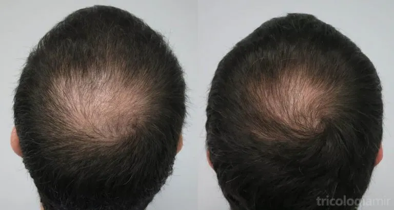 Aunque hemos destacado la versatilidad del tratamiento, desde nuestra experiencia, donde podemos obtener resultados más interesantes es en varones con alopecia androgenética de predominio en el vértex (coronilla). Y es que, en los últimos meses estamos observando muy buenos resultados en esta localización, no sólo para frenar o ralentizar la progresión de la alopecia, sino también para repoblar de forma parcial la zona alopécica. Además, los resultados en los pacientes respondedores suelen ser bastante rápidos, pudiéndose observar mejoría a partir de la primera sesión.