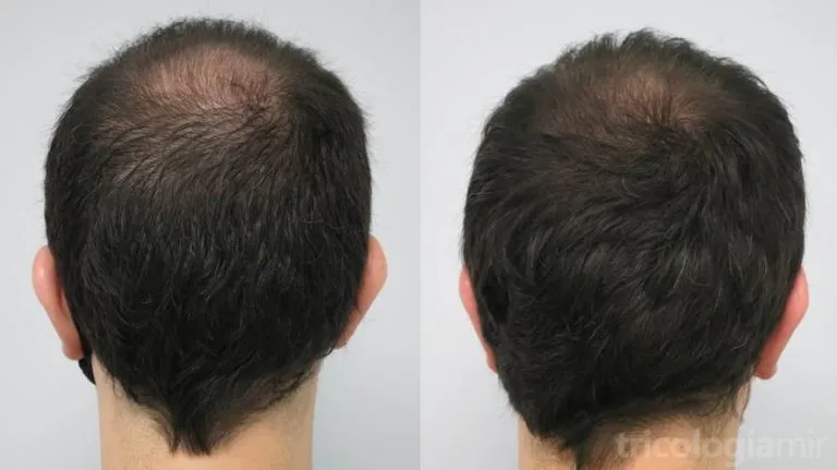 Este hecho demuestra que en algunos casos la miniaturización folicular puede ser reversible cuando no existe fibrosis. Es por esto, que siempre insistimos en realizar el tratamiento de manera precoz, ya que nos permite obtener los optimizar los resultados, revirtiendo los folículos parcialmente miniaturizados (devolviéndoles a su estado de pelo terminal, con su grosor inicial). Esto puede llegar a producir un aumento notable en la densidad capilar (como en los casos que enseñamos en el post).