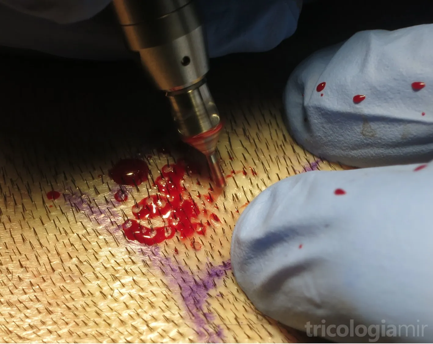 Cuando se requieren un elevado número de unidades foliculares, en la Unidad de Tricología y Trasplante Capilar combinamos ambas técnicas de extracción en el mismo paciente el mismo día o en etapas diferentes, normalmente primero FUSS y después FUE.