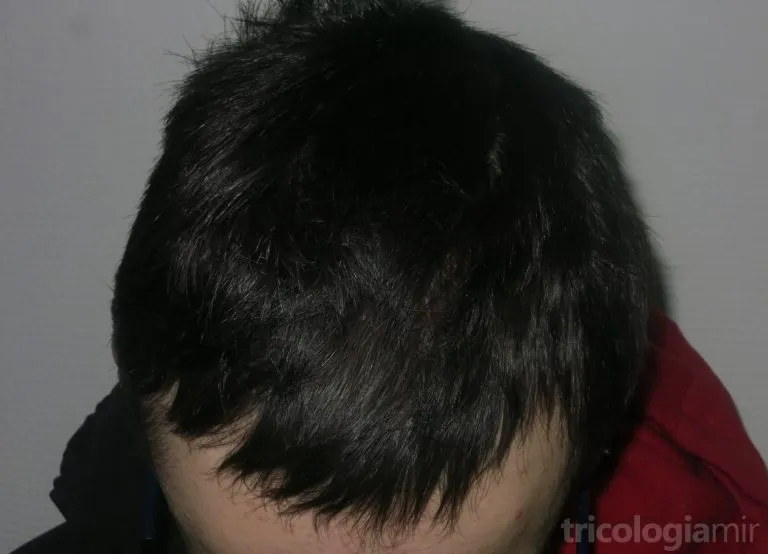 Aunque raramente es necesario, en casos difíciles, se puede recurrir al estudio histopatológico mediante biopsia de la zona afectada. En este, lo más característico es la presencia de folículos vacíos sin infiltrado inflamatorio y presencia hemorragia intraepitelial/intrafolicular.